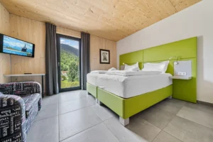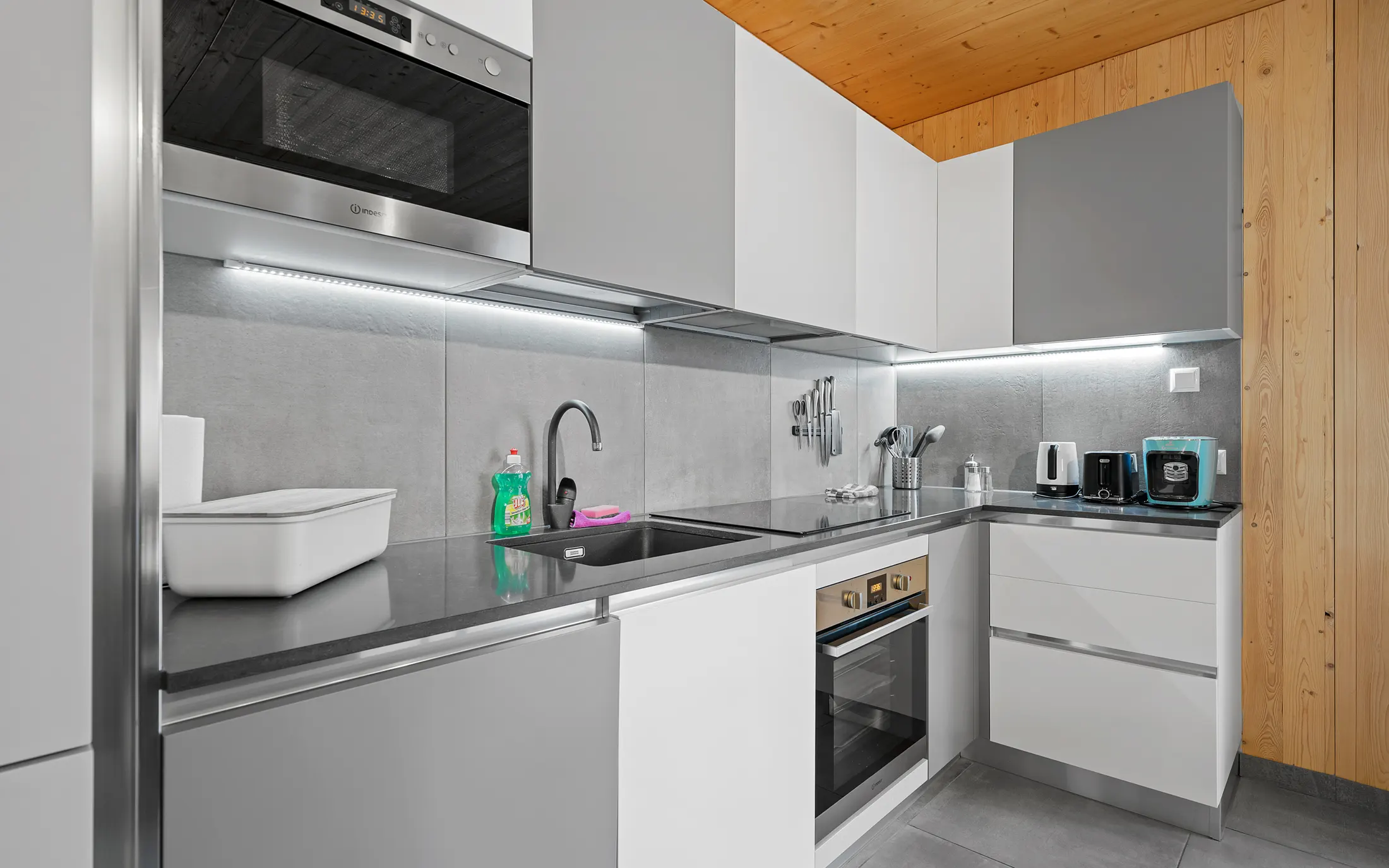Diese geräumige Ferienwohnung verfügt über 1 Wohnzimmer, 2 separate Schlafzimmer sowie 1 Bad mit einer ebenerdigen Dusche und kostenlosen Pflegeprodukten. Die Küche ist mit einem Kochfeld, einem Kühlschrank, einer Geschirrspülmaschine und Küchenutensilien gut ausgestattet. Darüber hinaus bietet die Ferienwohnung einen Flachbild-Kabel-TV und einen Balkon mit Bergblick auf die Areitbahn. In dieser Wohneinheit befinden sich 1 Doppelbett, 2 Einzelbetten und 2 ausziehbare Zusatzbetten.